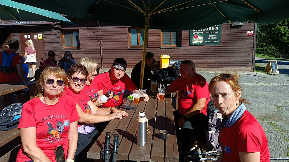 Pradziad -najwyższy szczyt w paśmie Wysokiego Jesionika w Czechach ..i tu dnia 20.09.2025 dotarła ekipa Wędrujących Głuszców...mimo wszelkim przeciwnością napotkanym wcześniej:-)...Droga do przejechania daleka....miejsca parkingowego brak :-) ale pogoda wyśmienita i nastroje podobne towarzyszyły nam całą drogę urokliwą doliną Opavy...Kilometrów sporo ale warto było dla widoków z góry i spotkania z Pradziadem. Zmęczeni prawie o zmroku zeszli -bądź częściowo na hulajnogach zjechali -:-) wszyscy szczęśliwie...
